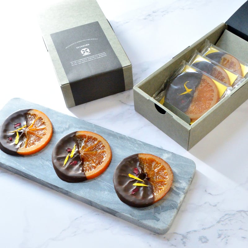 厳選された国産ブラッドオレンジ(タロッコ種)のみを使用したオランジェットです。果肉が柔らかく甘みが強いタロッコ種のオレンジピールにくちどけ滑らかなビターチョコレートをかけた大人のスイーツです。